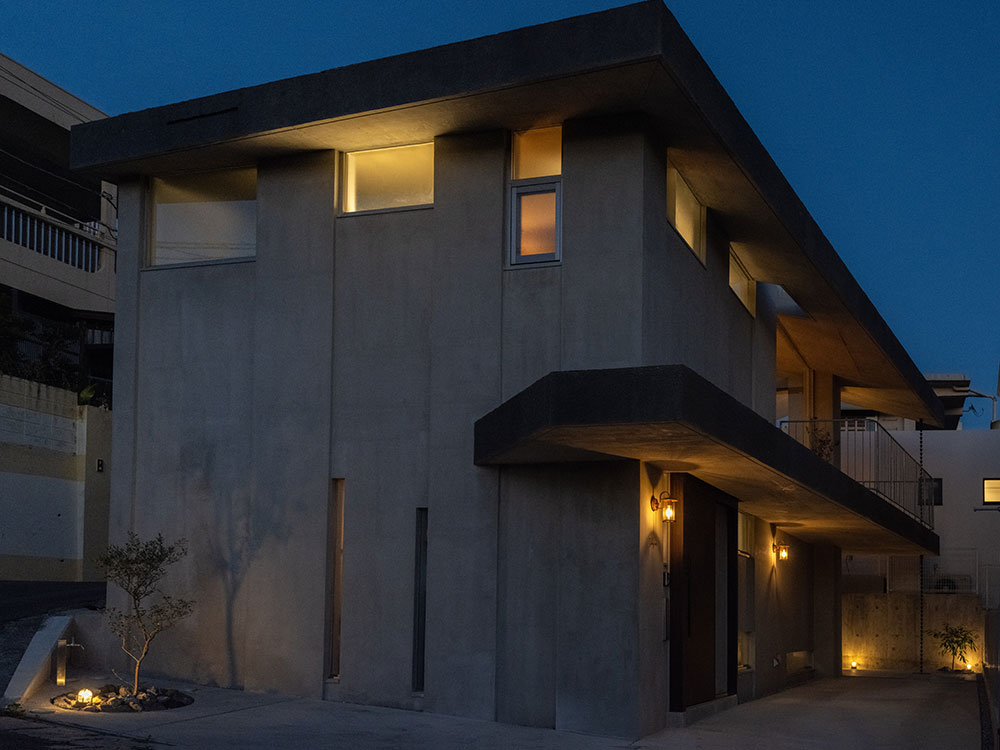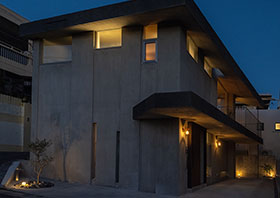 外観は、大きな石に平たい石を取り付けたような、力強さと静けさを大切にした佇まいとしています。