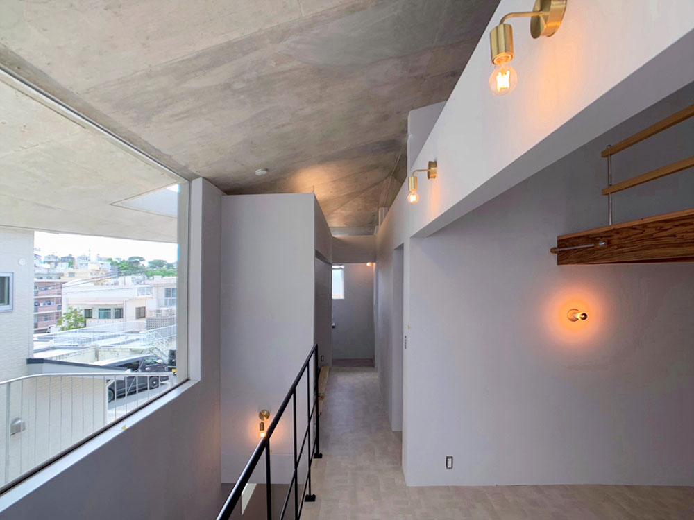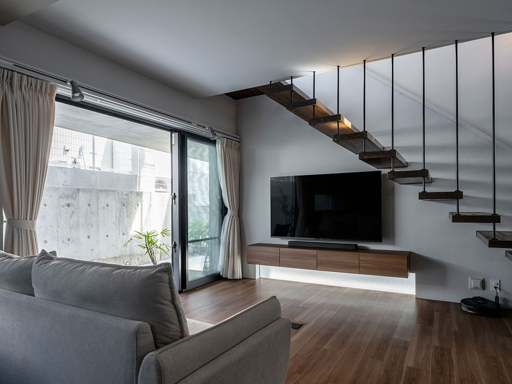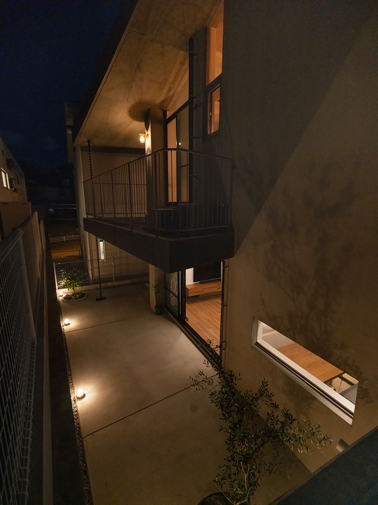 また、空間に自然に馴染むようにデザインされた階段や、通路に収納や多目的スペースとしての機能を持たせるなど、随所に工夫を施しました。内部空間、外部空間共に面積以上の広がりと機能性を兼ね備える計画となっています。