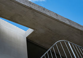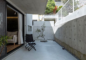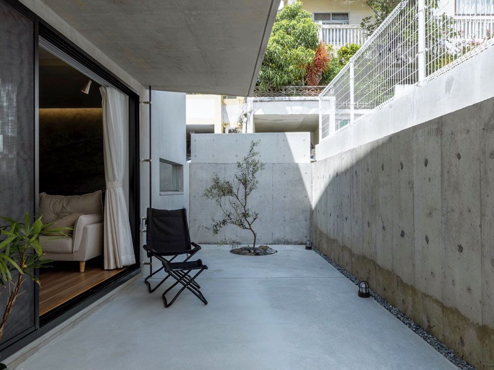 屋根側面は汚れていることに違和感を感じない「石」を露出させています。経年による風化や汚れが、侘び寂びに繋がる計画としました。